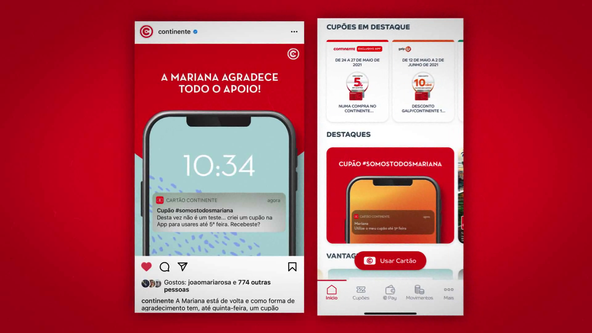 Aproveitamos um erro humano para mostrar que é isso que somos. Humanos. Que as marcas, por mais conceituadas e estabelecidas que sejam, são feitas de pessoas. E com um post que brincou com o próprio erro, o Continente iniciou um movimento que foi parar às redes tanto dos nossos seguidores como de diversas marcas. Como conseguimos manter este tema no top of mind do público, tirando partido dele? Durante o fim-de-semana seguinte, focámos a nossa comunicação em dark post com call to action para, quem tivesse já a aplicação, ficar atento e, quem não tivesse ainda, para fazer o download, com a promessa de novidades em breve. Na segunda-feira, foi deixada uma nova notificação aos utilizadores da aplicação, desta vez propositada e com um cupão de desconto #somostodosmariana.